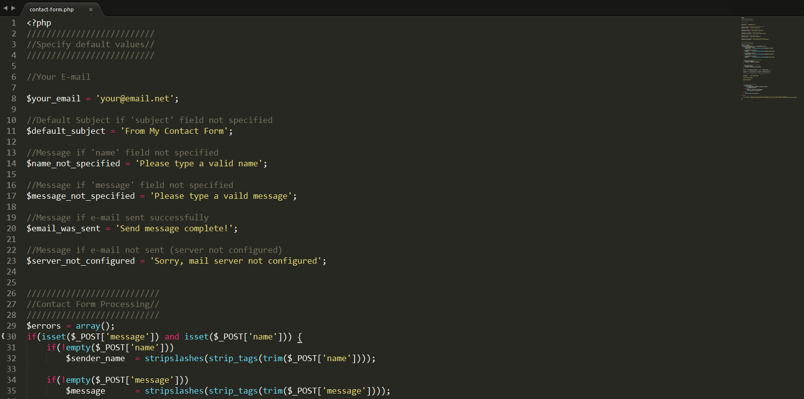Your email address should be specified in the contact-form.php file. See the screenshot below.