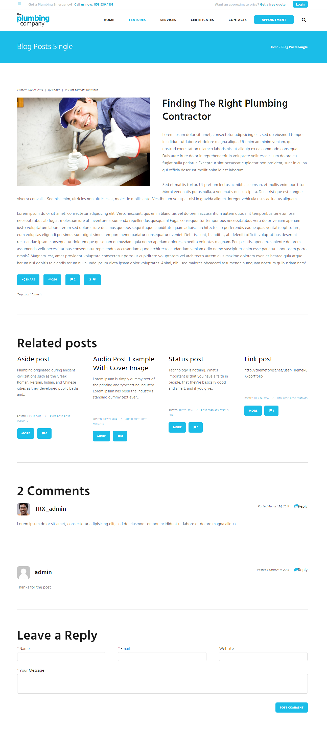 Plumbing is a responsive and clean HTML template, made by a team of creative professionals here in ThemeRex. ThemeRex is a place to buy premium WordPress themes and HTML templates covered by effective and helpful support. Creative, crazy about details and innovative. We are a small and customers oriented company aiming to exceed your expectations!