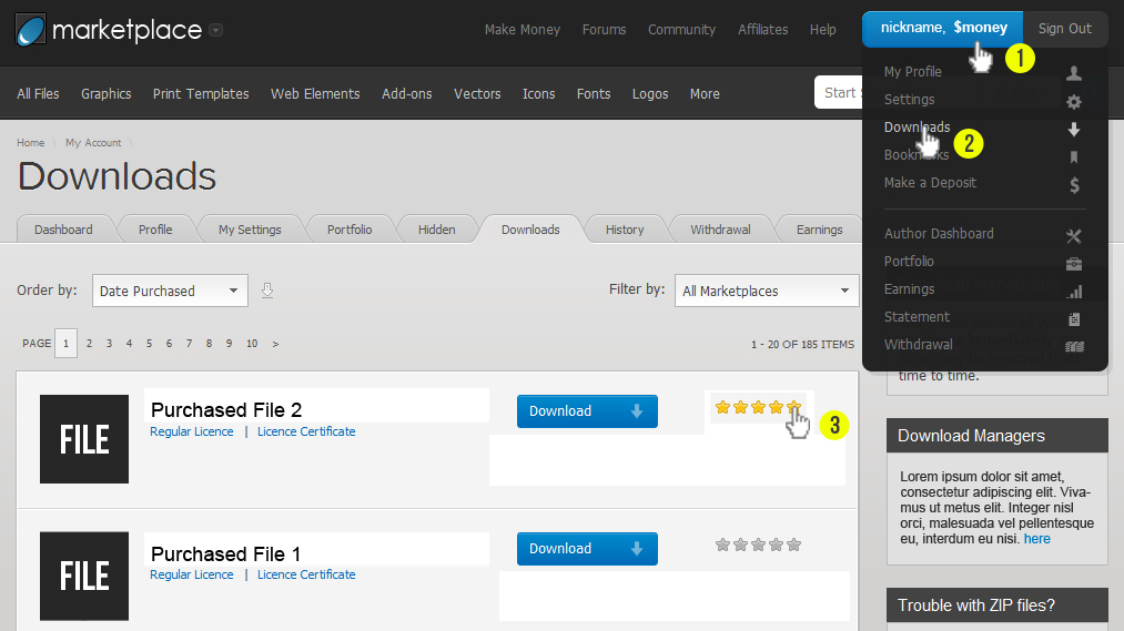 • Click the "Download" button and select "License certificate & purchase code" in the drop down menu.